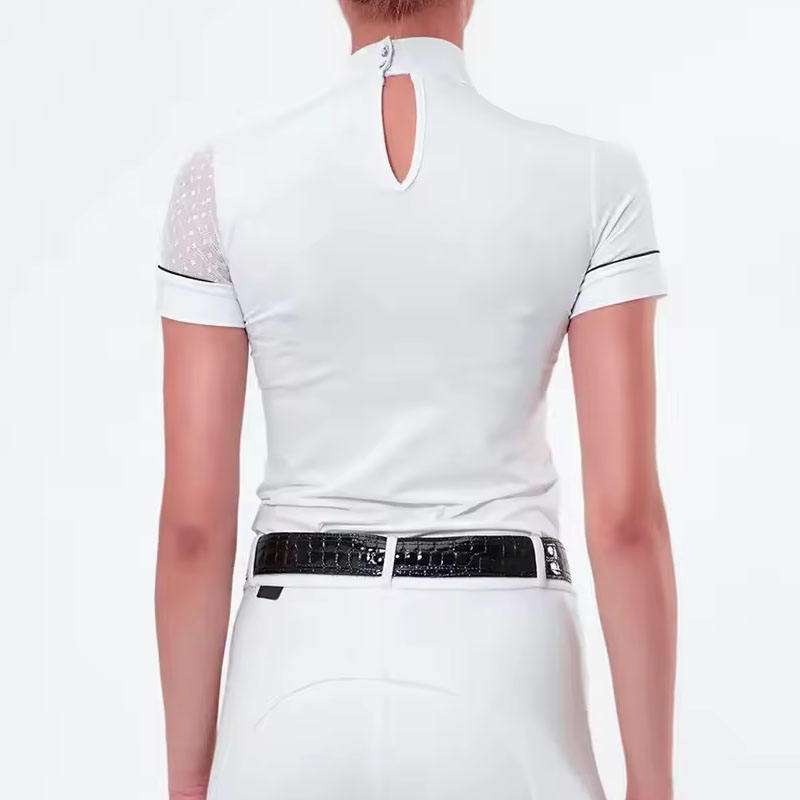 Camisetas de equitación con logotipo personalizado para mujer, fabricantes de ropa ecuestre, camisetas de manga corta para montar a caballo para mujer