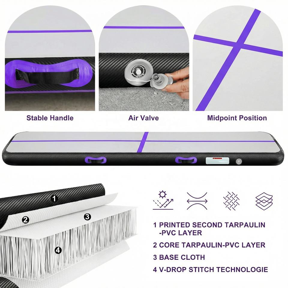 Colchoneta Inflable Personalizada con Logotipo para Gimnasia, Colchoneta de Entrenamiento de PVC Disponible en Longitudes de 3m, 4m y 6m con 10cm de Grosor para Uso en Gimnasios