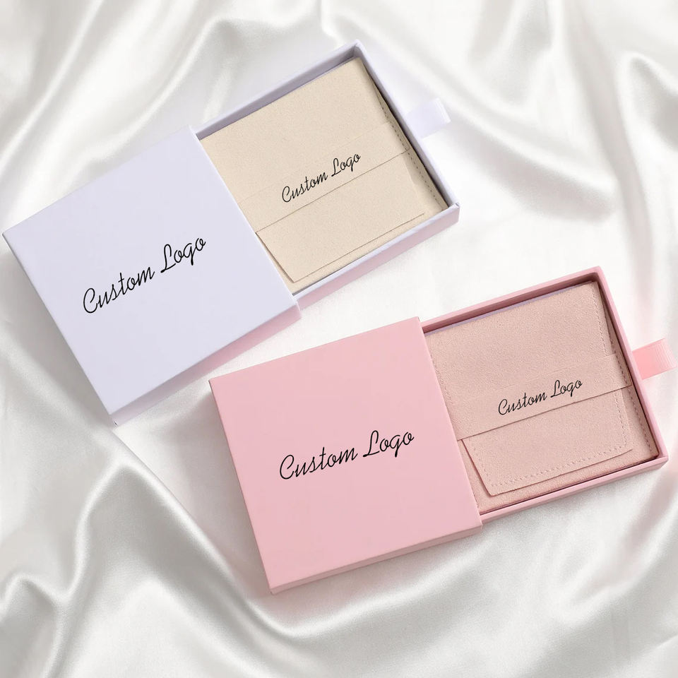 Caja de Cartón Impresa con Logotipo Personalizado para Joyería, con Bolsa, Caja Deslizante para Joyería de Moda