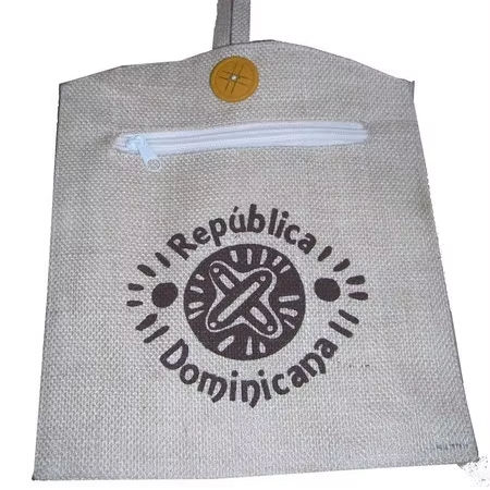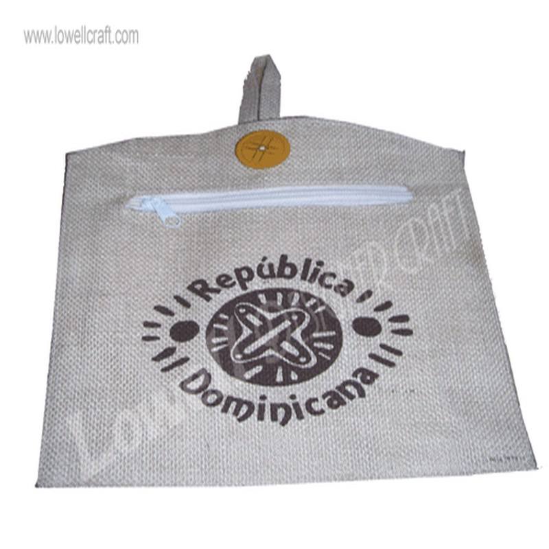 Bolsa de sobre reutilizable con estampado de yute y logotipo personalizado, bolsa de estilo moderno con cierre de cremallera con patrón geométrico