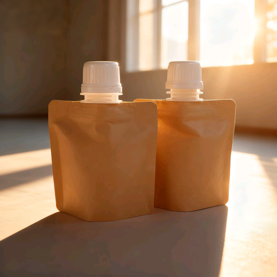 Logotipo personalizado Kraft grado alimenticio recarga boquilla bolsa para jabón líquido cuerpo aceite loción crema cuidado de la piel embalaje