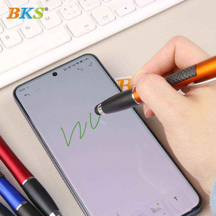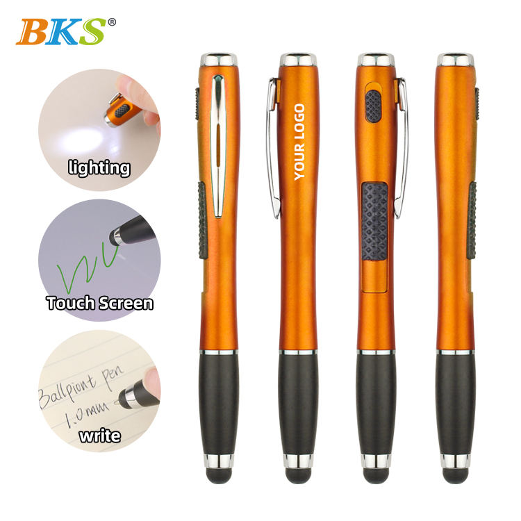 Luz LED con logotipo personalizado para bolígrafo Stylus 1,0mm negro 13g bolígrafo promocional de estilo deportivo corporal de plástico