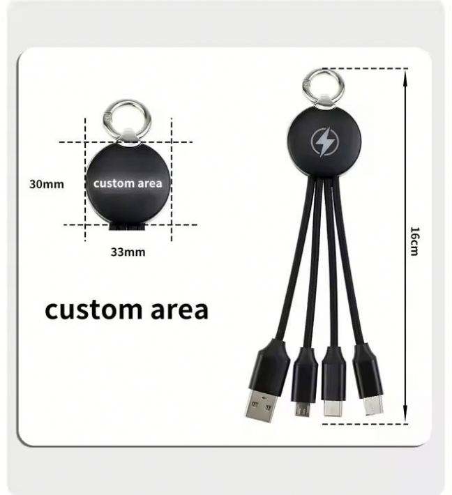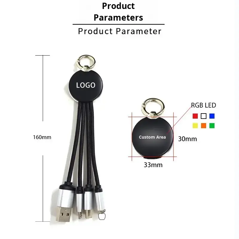 Cable LED con Logotipo Personalizado, 3 en 1, Corto | Artículo Promocional Innovador para Eventos Empresariales | Solución de Marca Única