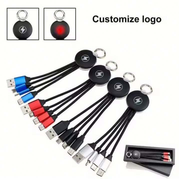 Cable LED con Logotipo Personalizado, 3 en 1, Corto | Artículo Promocional Innovador para Eventos Empresariales | Solución de Marca Única