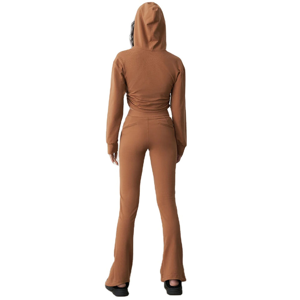 Conjuntos Deportivos de 2 Piezas con Logotipo Personalizado para Mujer, Trajes Deportivos para Correr, Traje Deportivo con Pantalones Acampanados para Mujer