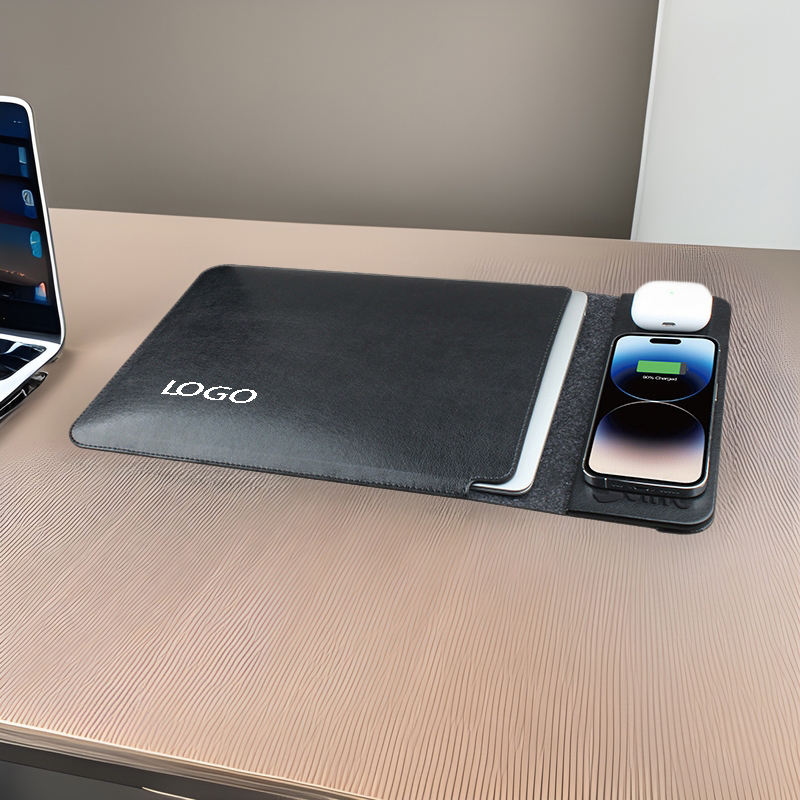 Funda para Portátil con Logotipo Personalizado, Multifuncional, con Auriculares Magnéticos, Cargador Inalámbrico Portátil 3 en 1 de Carga Rápida de 15W y 5W