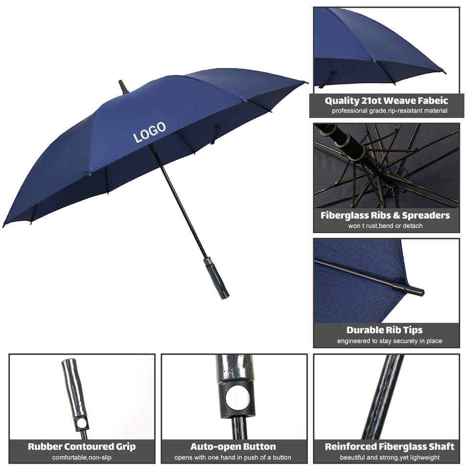 Paraguas de Golf Clásico Grande con Logotipo Personalizado, Protección Totalmente Automática Contra el Viento, Doble Capa de Poliéster, Paraguas de Marca para