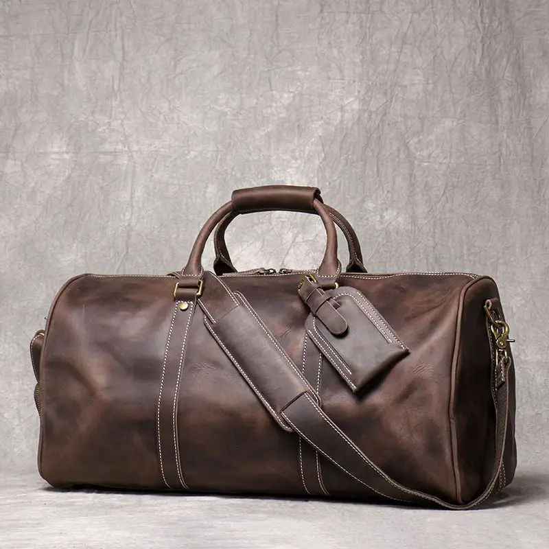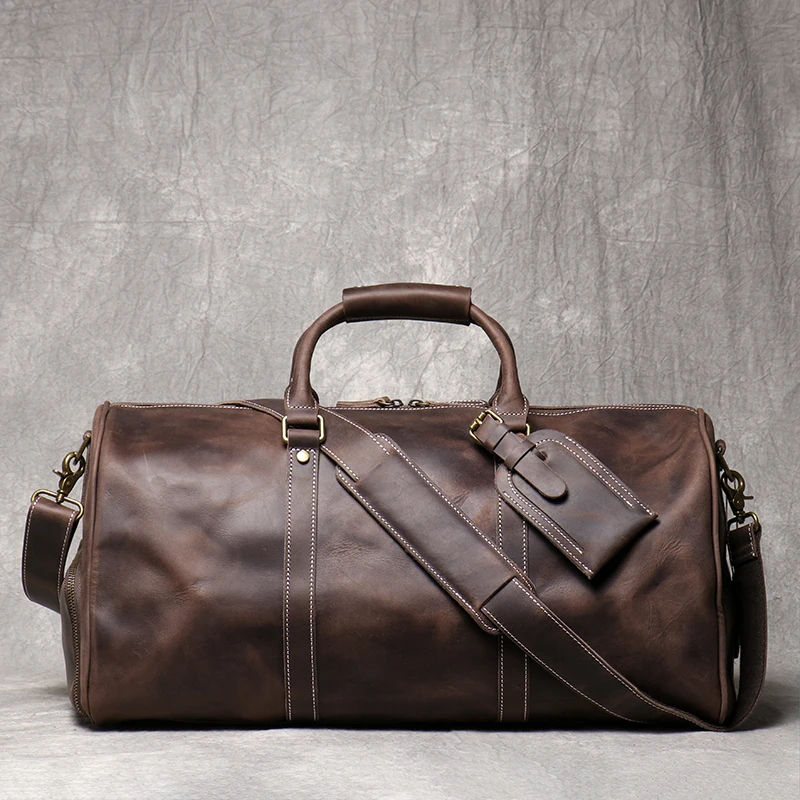 Bolsa de lona de mano de cuero genuino vintage grande con logotipo personalizado con cierre de cremallera bolsa de zapatos-Travel Friendly