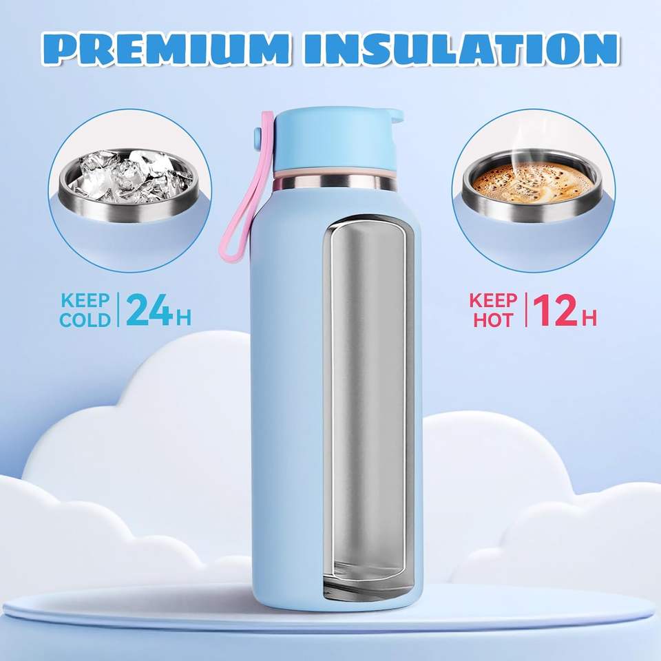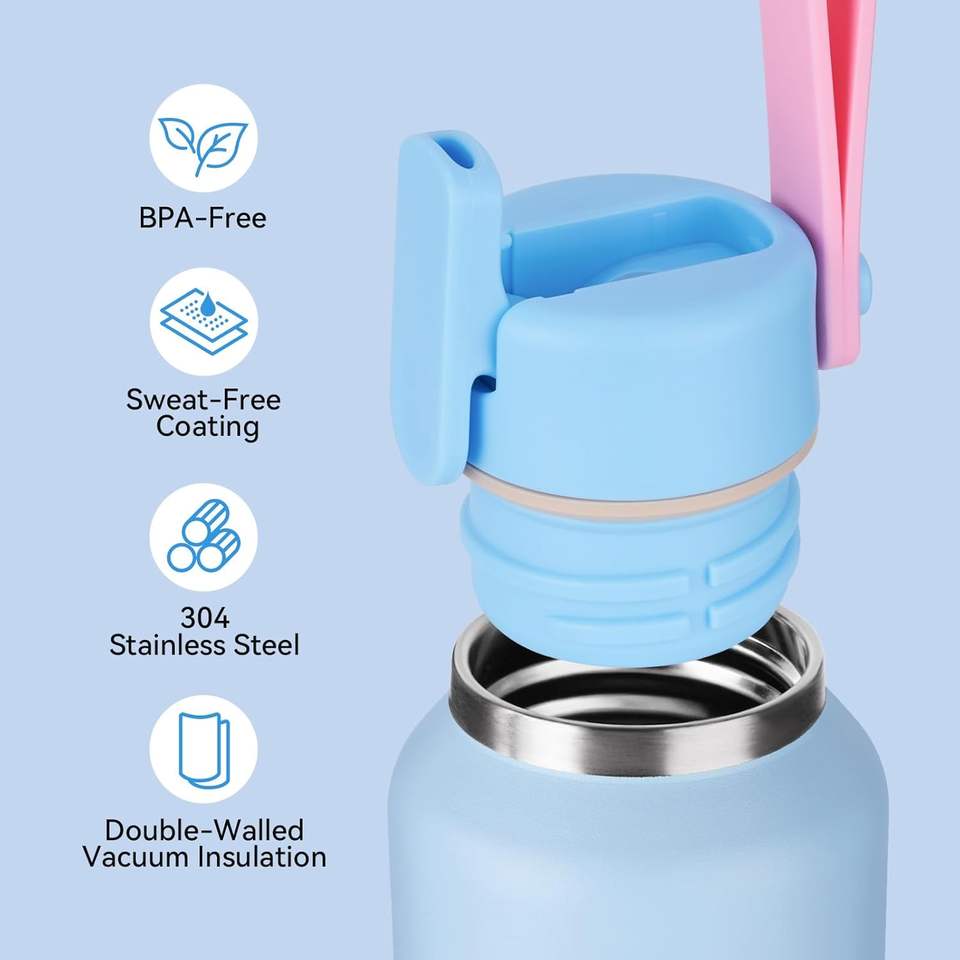Botellas de Agua Deportivas de Acero Inoxidable con Aislamiento al Vacío, Tapa con Pajita Extraíble a Prueba de Fugas y Logotipo Personalizado, 32 oz