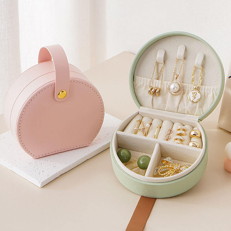 Soporte de transporte de cuero con logotipo personalizado, bolsa portátil con cremallera, caja de almacenamiento de joyas, estuche de viaje, organizador de joyas con asa