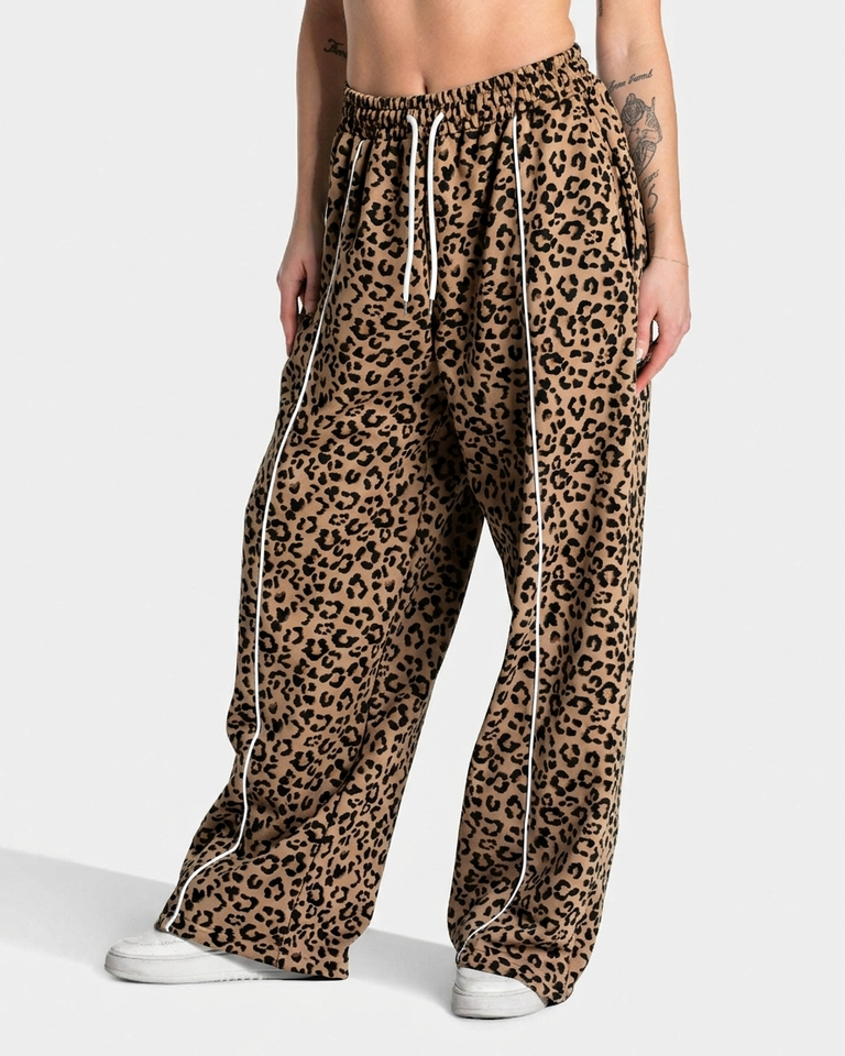 Conjunto Deportivo para Mujer con Estampado de Leopardo y Logotipo Personalizado, Sudadera con Capucha y Ribete en Contraste, Pantalones Deportivos con Forro en Contraste