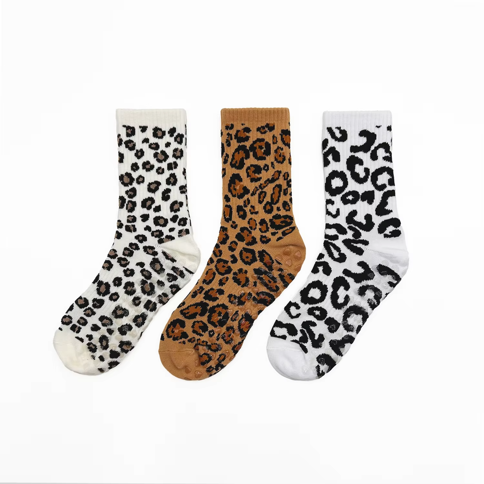 Calcetines de Pilates con Estampado de Leopardo y Logotipo Personalizado para Mujer, Calcetines de Yoga Antideslizantes con Puntos de Agarre en Toda la Suela, de Algodón, para Estudio de Yoga, Venta al Por Mayor