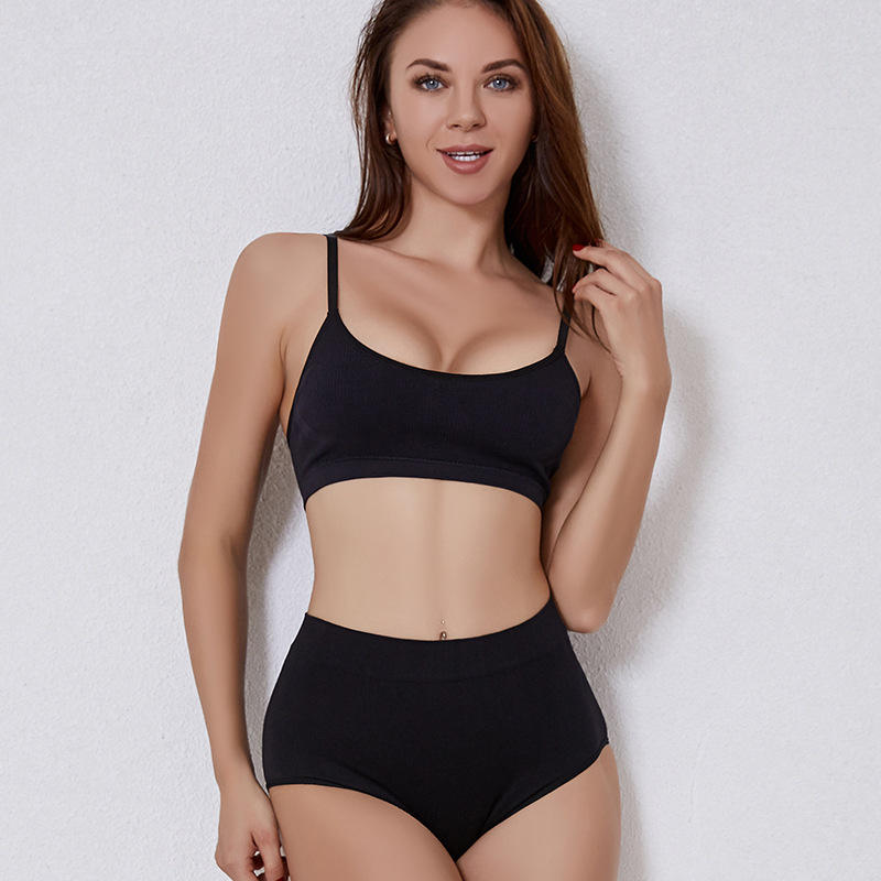 Conjunto de sujetador sin costuras con encaje y letras con logotipo personalizado para mujer, sujetadores inalámbricos, top y ropa interior, conjunto de yoga de color sólido de 2 piezas