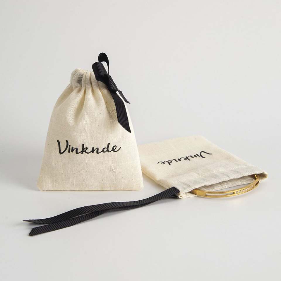 Bolsa de Tela de Lino y Algodón con Cordón, Personalizable con Logotipo, para Joyería, Collares, Pendientes, Anillos, y Carteras