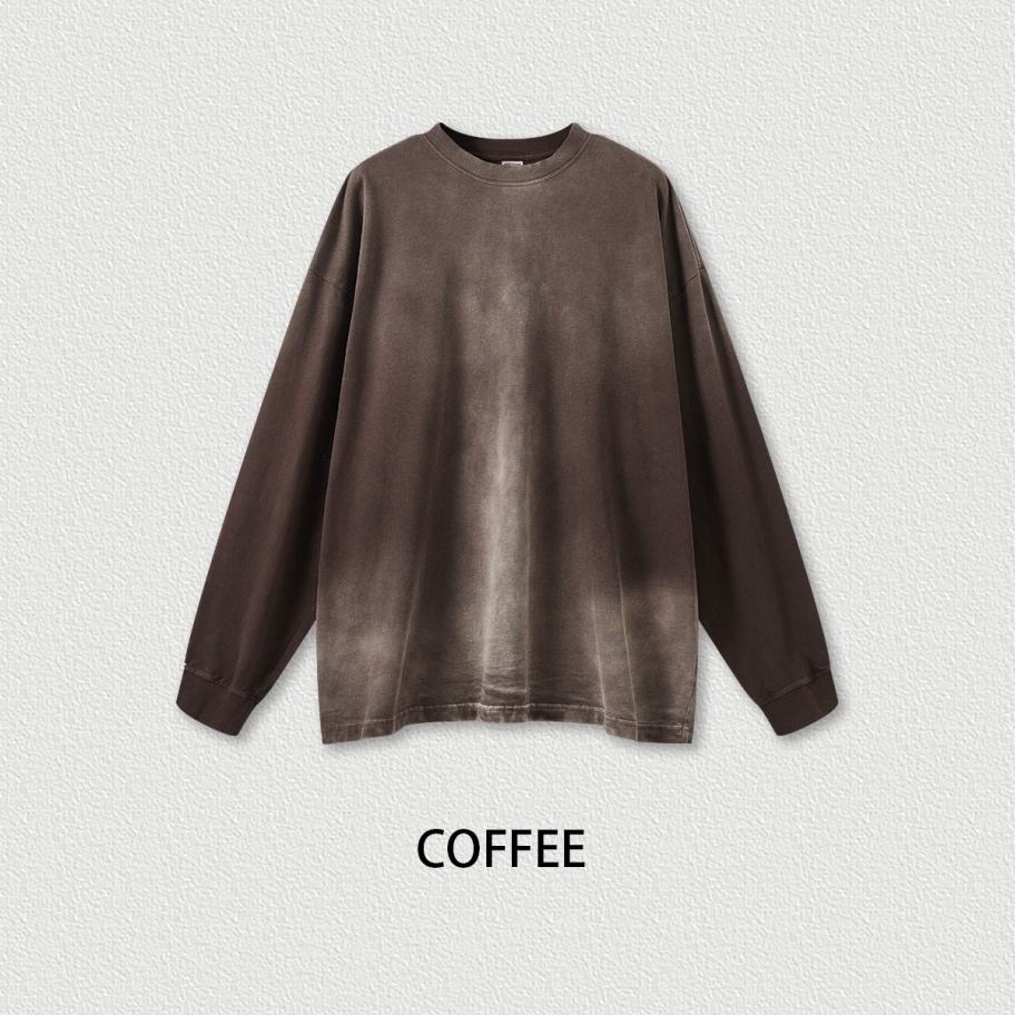 Camiseta de Manga Larga con Logotipo Personalizado, Estilo Vintage Desgastado, Hombros Caídos, Cuello Redondo, Gruesa, Lavada, Degradada, Estilo Hip Hop para Hombre