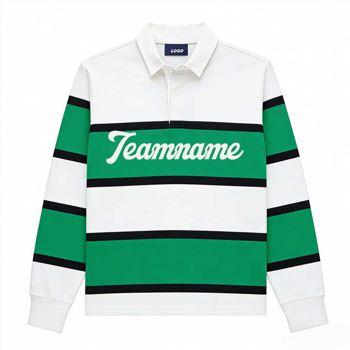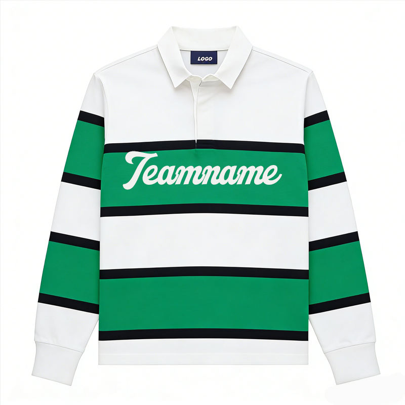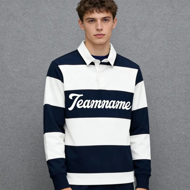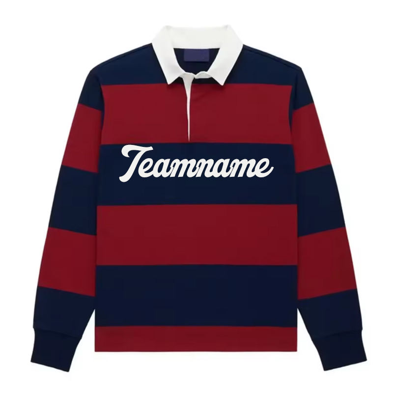 Polo de Rugby Personalizado con Logotipo, MOQ Bajo, Económico, a Rayas, para Hombre, Bordado, Manga Larga, Algodón, Uniforme de Rugby, Camiseta de Rugby