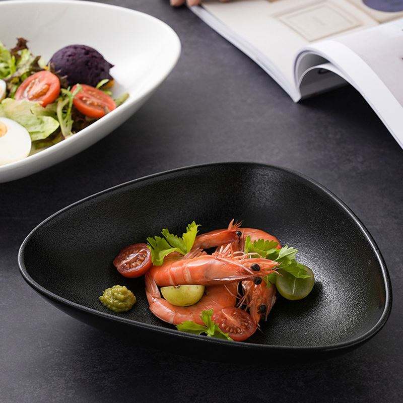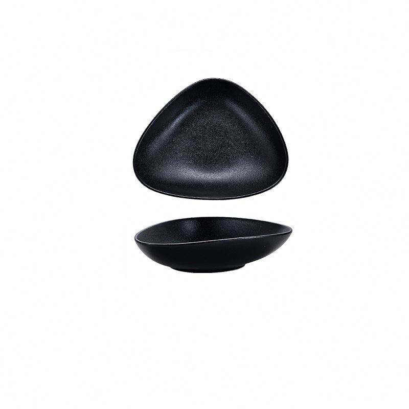 Logotipo personalizado de lujo negro de cerámica triángulo bistec tazón de sopa vajilla de boda