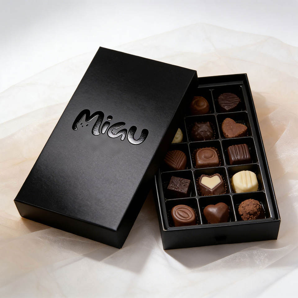Caja de Regalo de Chocolate de Lujo con Logotipo Personalizado, Caja de Cartón Biodegradable para Trufas y Postres, con Tapa y Base, con Separador, para Cumpleaños o San Valentín