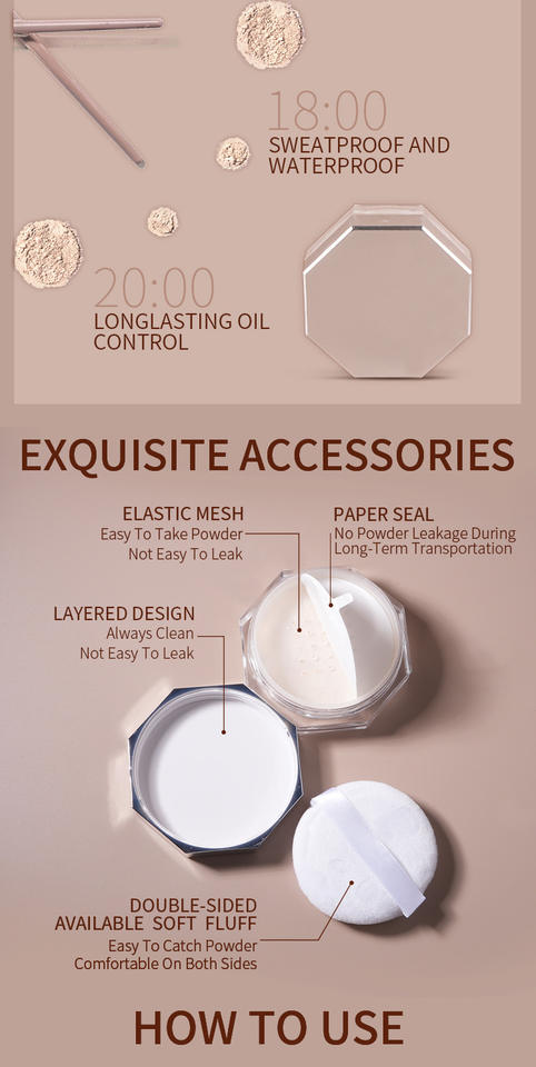 Polvo suelto de maquillaje con logotipo personalizado, Etiqueta Privada, 8 colores, Control de aceite, resistente al agua, mate, polvo suelto de ajuste