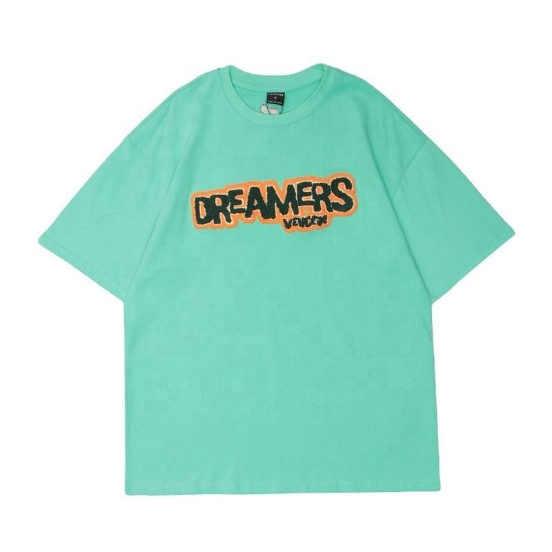 Ropa de hombre con logotipo personalizado, Etiqueta Privada, Parche de chenilla, letras bordadas, camiseta de trabajo para hombre, ropa informal de poliéster
