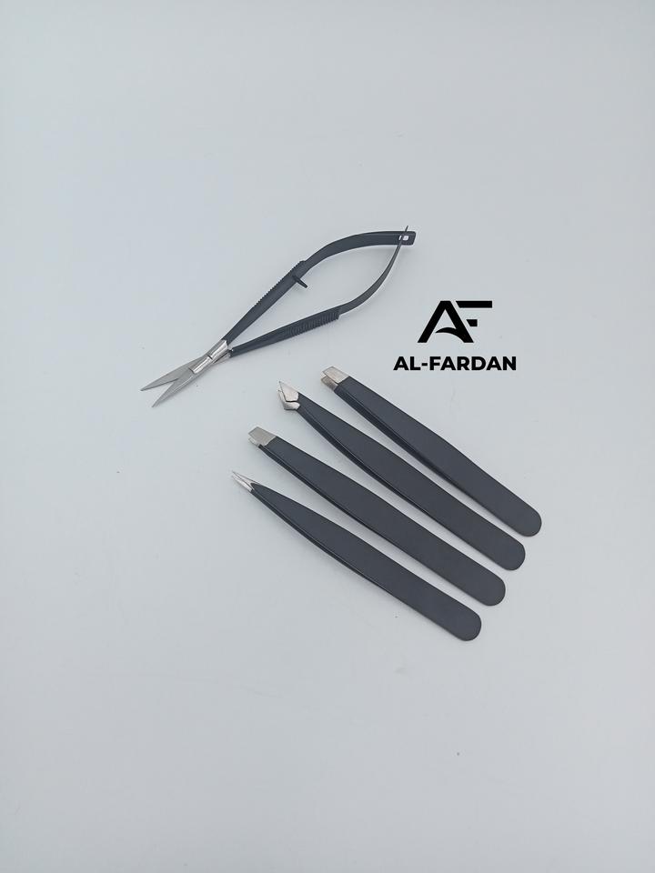 Juego de pinzas para cejas de Color negro mate con logotipo personalizado con tijeras de resorte pinzas para extensión de cejas de Punta puntiaguda cuadrada inclinada