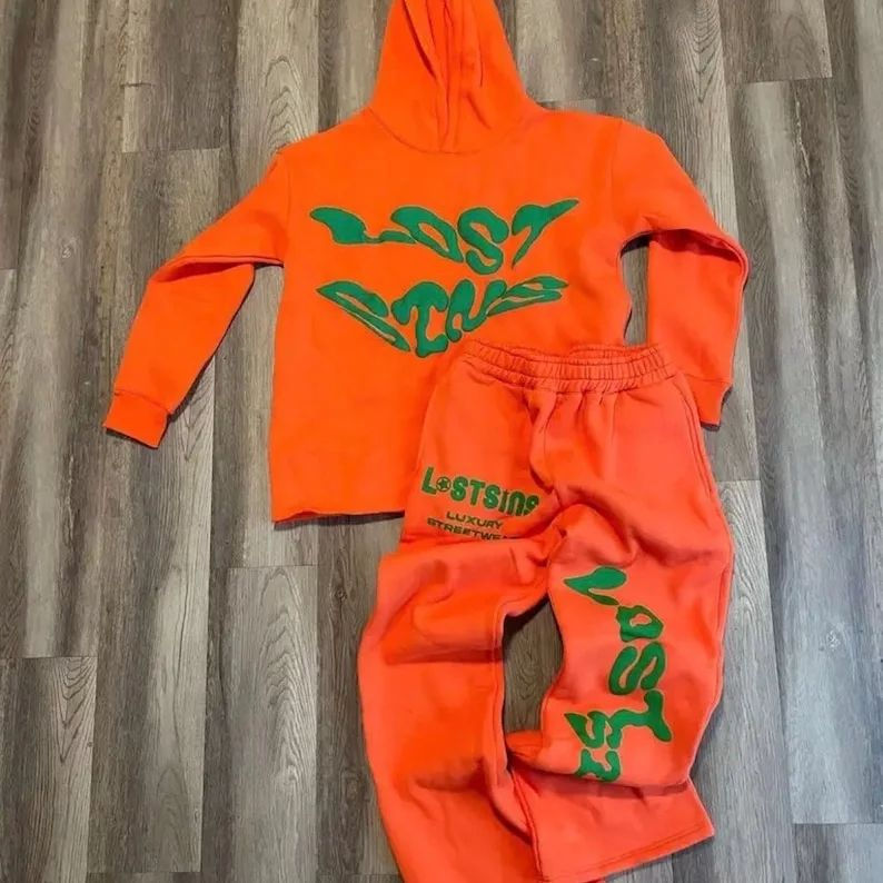 Conjunto de chándal acampanado con logotipo personalizado para hombre, conjunto de pantalones de chándal acampanados y Sudadera con capucha, chándales Unisex, sudaderas con capucha y estampado abullonado, conjunto de pantalones de chándal acampanados