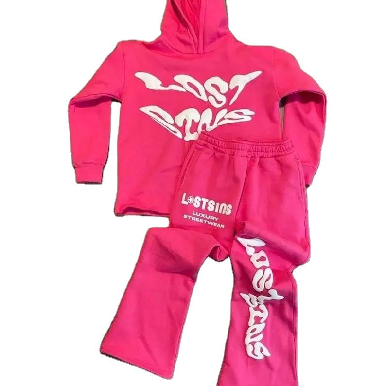 Conjunto de chándal acampanado con logotipo personalizado para hombre, conjunto de pantalones de chándal acampanados y Sudadera con capucha, chándales Unisex, sudaderas con capucha y estampado abullonado, conjunto de pantalones de chándal acampanados