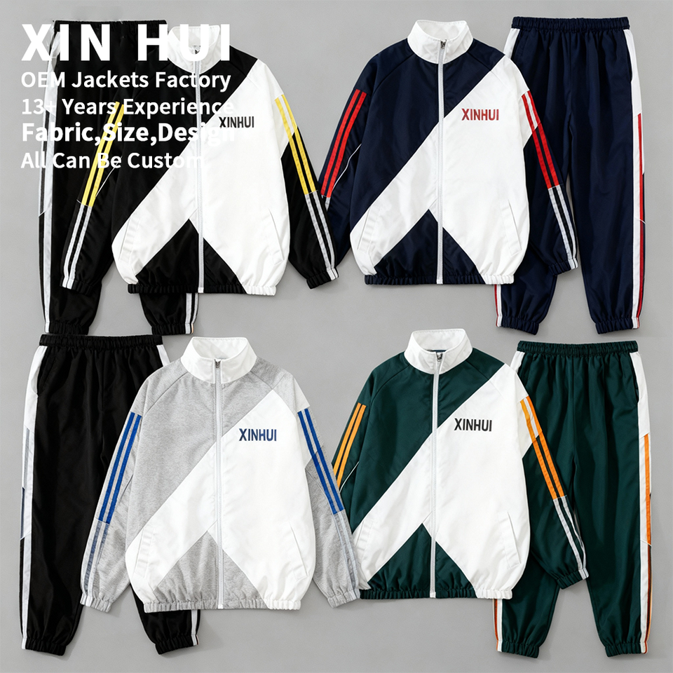 Conjunto Deportivo de Invierno para Hombre con Logotipo Personalizado, Chaqueta Cortavientos de Cuero PU con Parches de Color en Contraste, Pantalones Jogger, Conjunto de Dos Piezas, Ropa Urbana