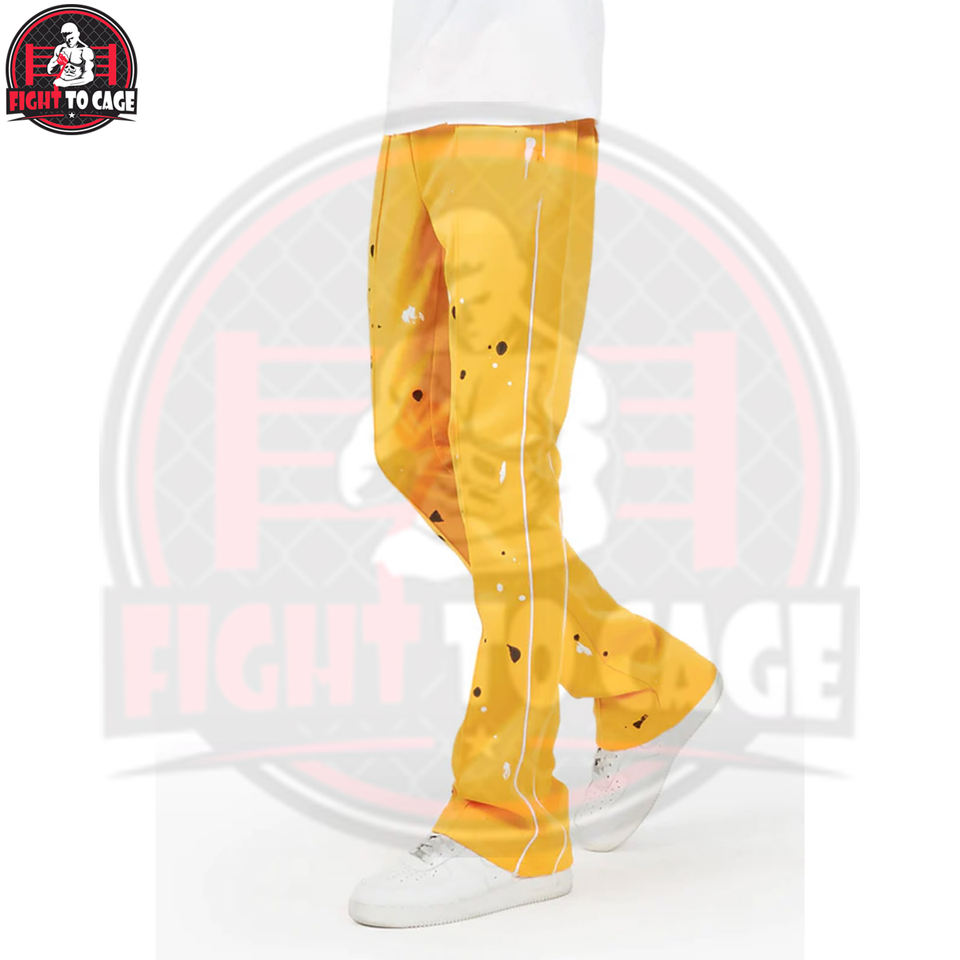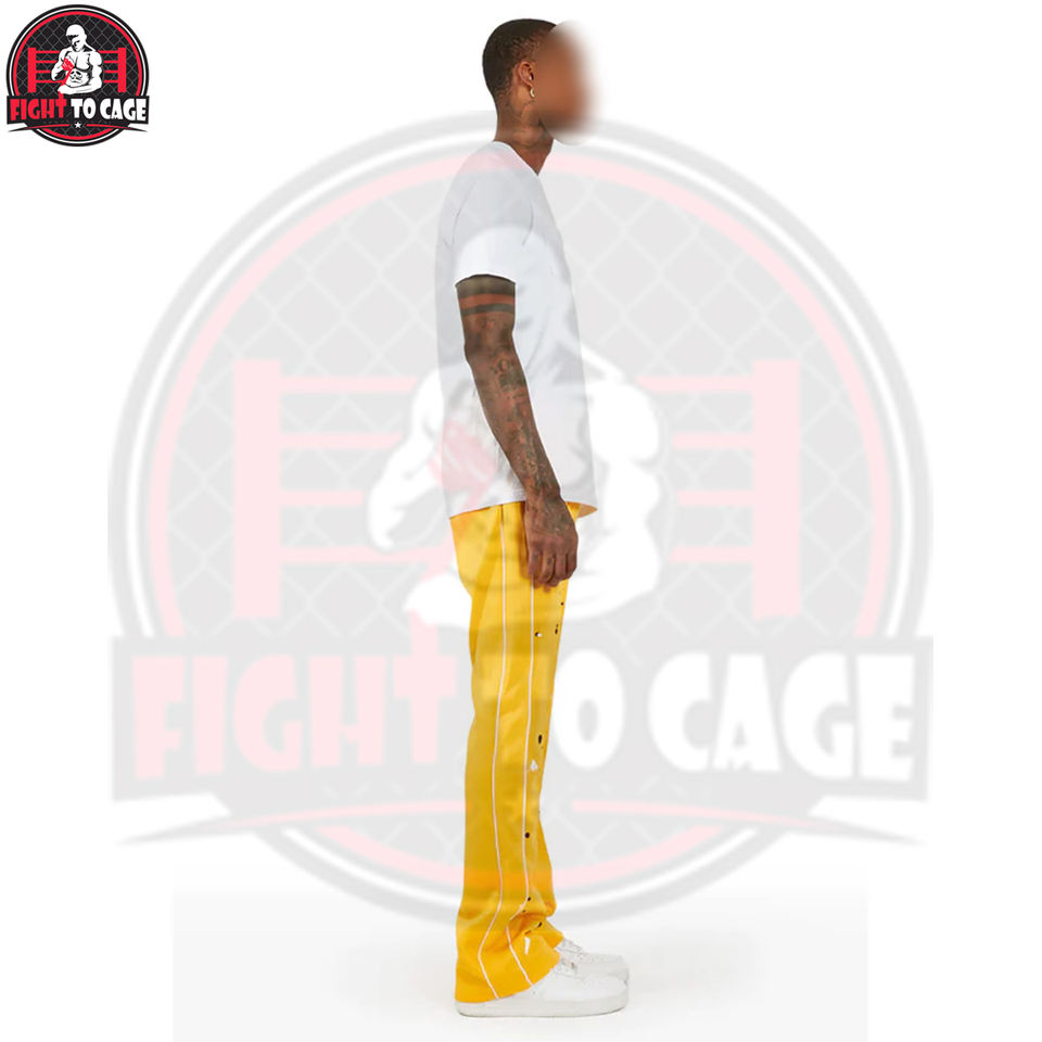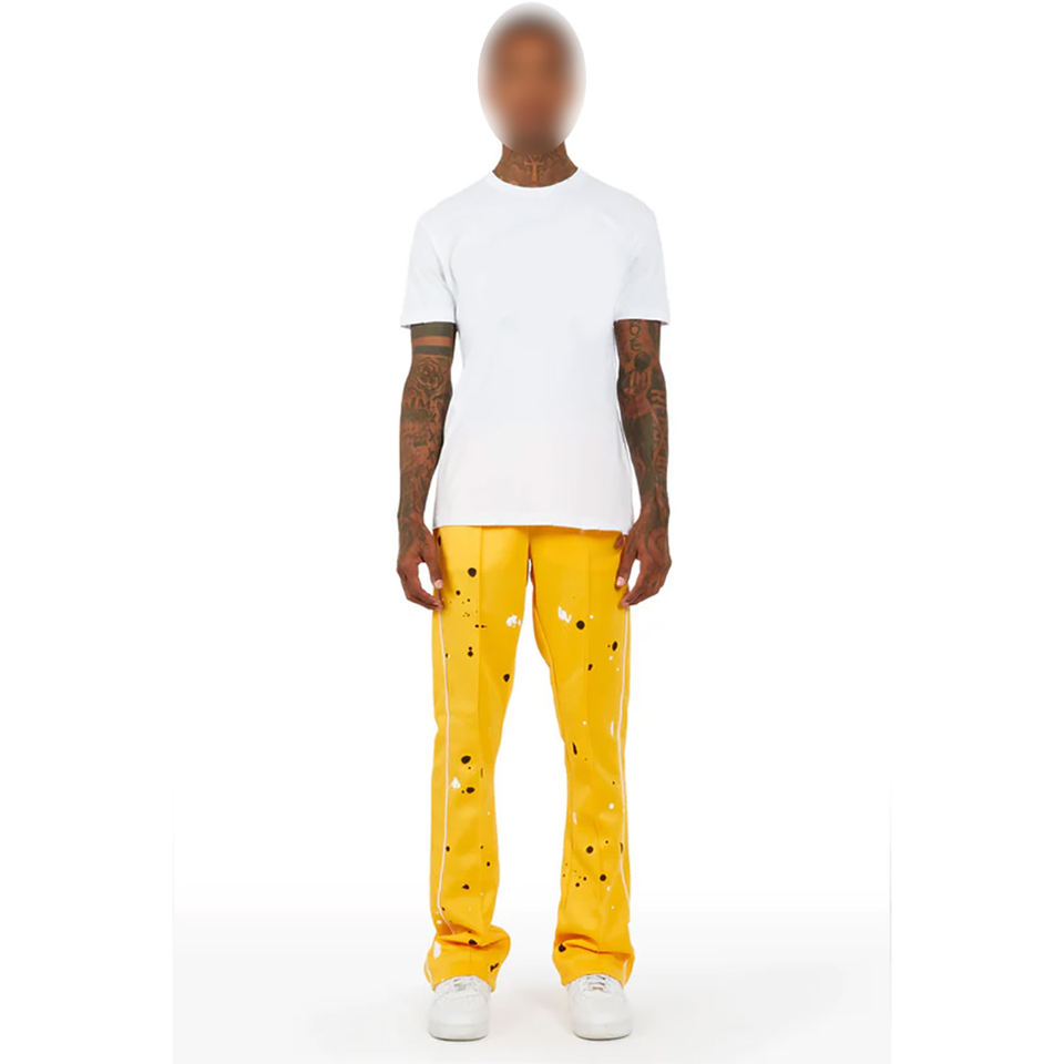 Pantalones de Hombre con Logotipo Personalizado, Diseño Único con Salpicaduras de Pintura Amarilla, Estilo Urbano con Franjas Laterales, Novedad, Ligeros