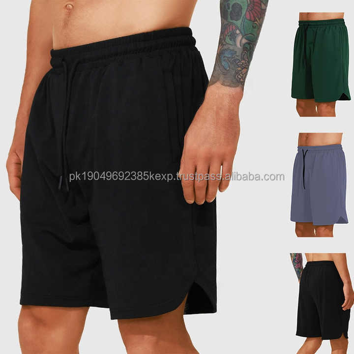 Pantalones cortos para correr con cordón ajustable para hombre con logotipo personalizado y bolsillos, pantalones cortos deportivos transpirables de secado rápido para entrenamiento en el gimnasio