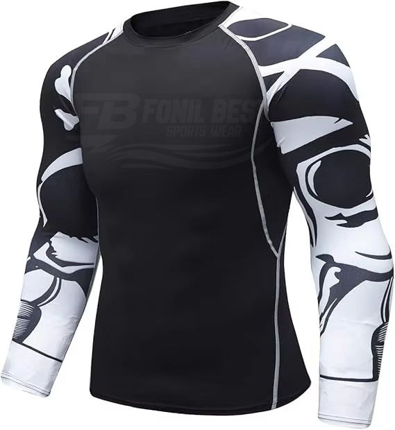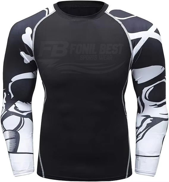 Camiseta de Compresión Deportiva Negra para Hombre con Logotipo Personalizado y Mangas con Estampado de Calavera, para Entrenamiento