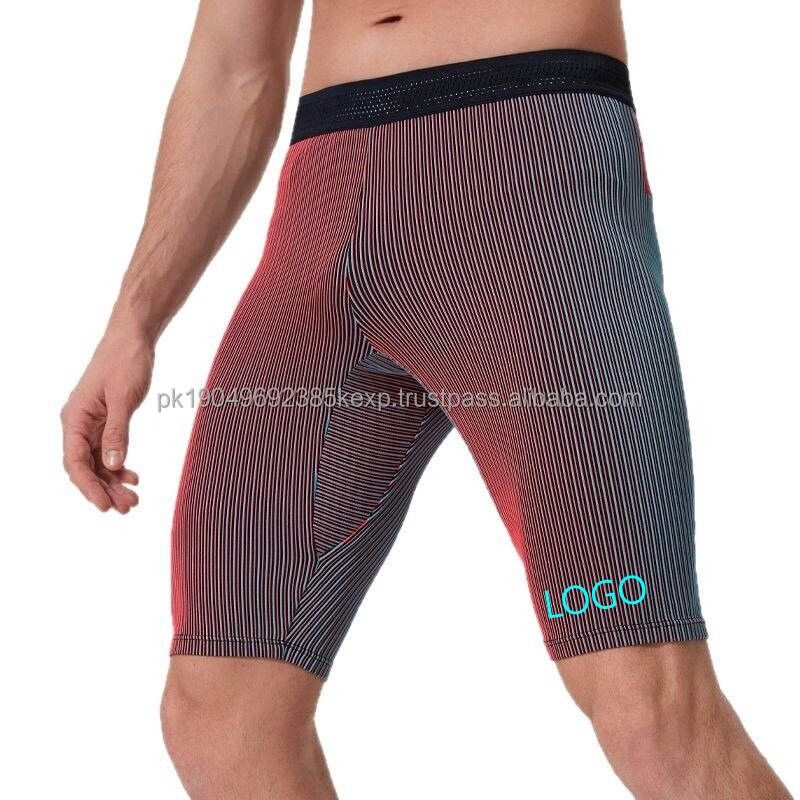 Pantalones cortos de compresión medio ajustados para hombre con logotipo personalizado, pantalones de entrenamiento sólidos de secado rápido, pantalones cortos para correr Maratón