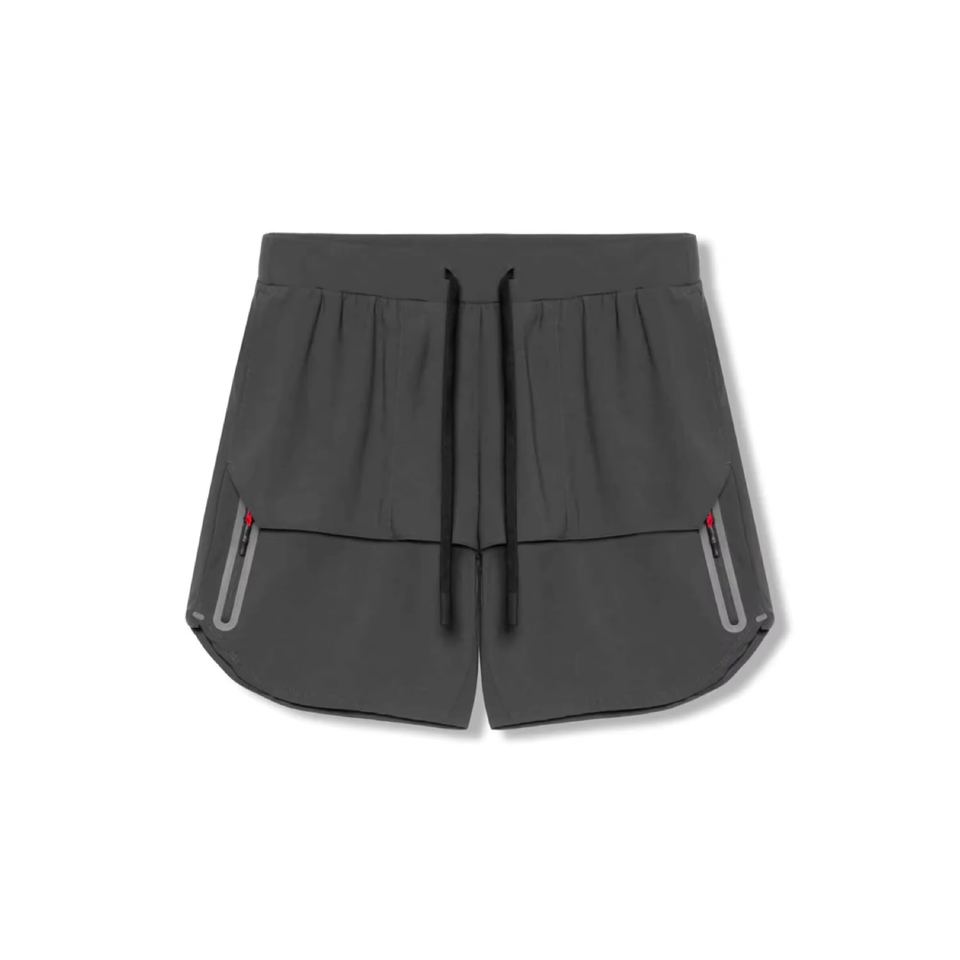 Pantalones cortos para correr de doble capa para hombre con logotipo personalizado, transpirables, de secado rápido, para entrenamiento, gimnasio, atléticos, con bolsillos, estilo informal