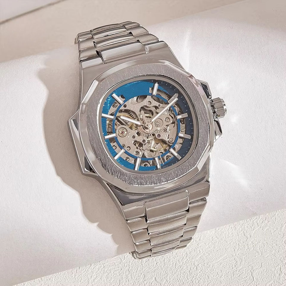 Reloj con caja de esqueleto de acero inoxidable de lujo para hombre con logotipo personalizado, movimiento mecánico automático, esfera de 41mm de diámetro, 18mm de ancho de banda