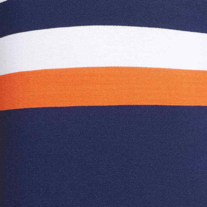 Polo Personalizado para Hombre con Bloques de Color, Camiseta Polo a Rayas con Parches, Polo de Algodón Piqué en Naranja, Blanco y Azul Marino