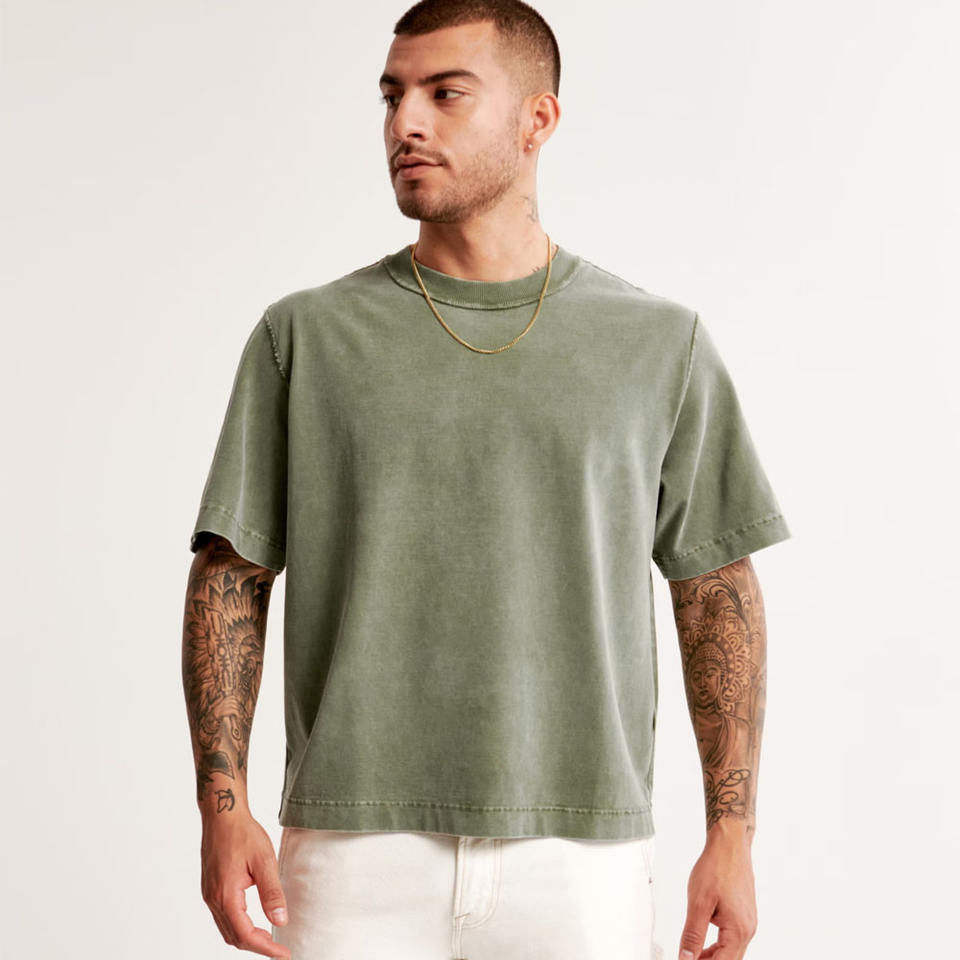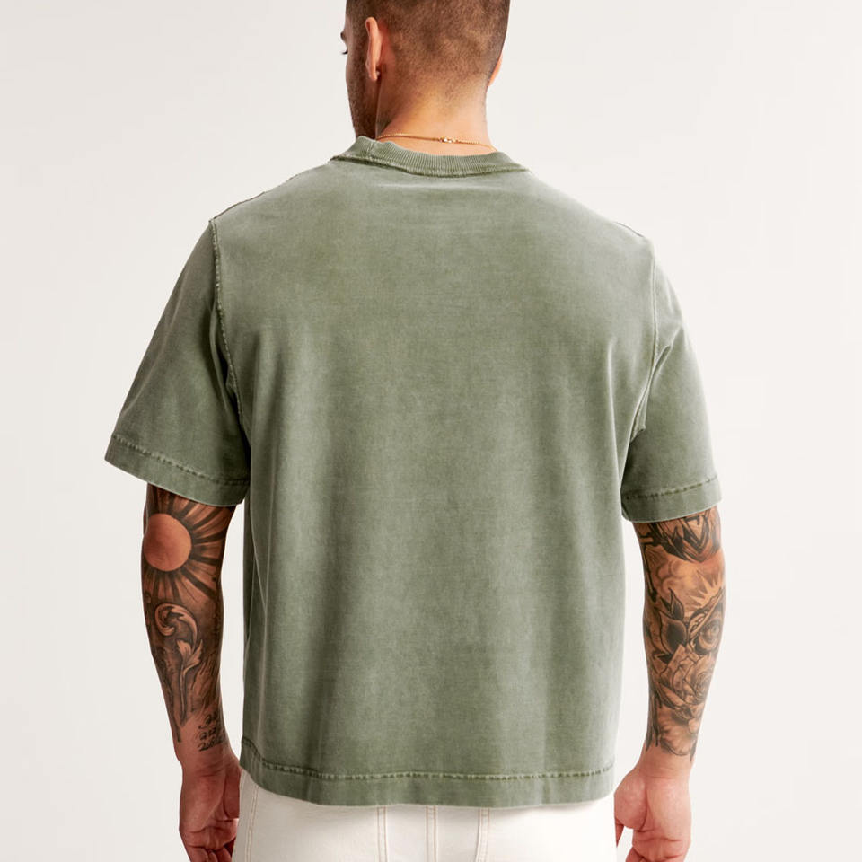 Camiseta de gran tamaño con lavado ácido para hombre con logotipo personalizado Camiseta de alto rendimiento 100% algodón con lavado corto