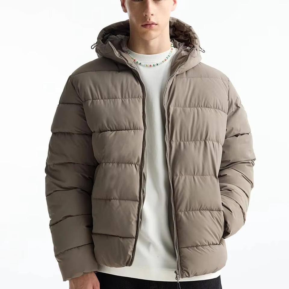 Chaqueta de Invierno Acolchada para Hombre con Logotipo Personalizado, Tejido de Lona Grueso y Sólido, Abrigo Cálido para Exteriores con Cuello Alto y Capucha Acolchada