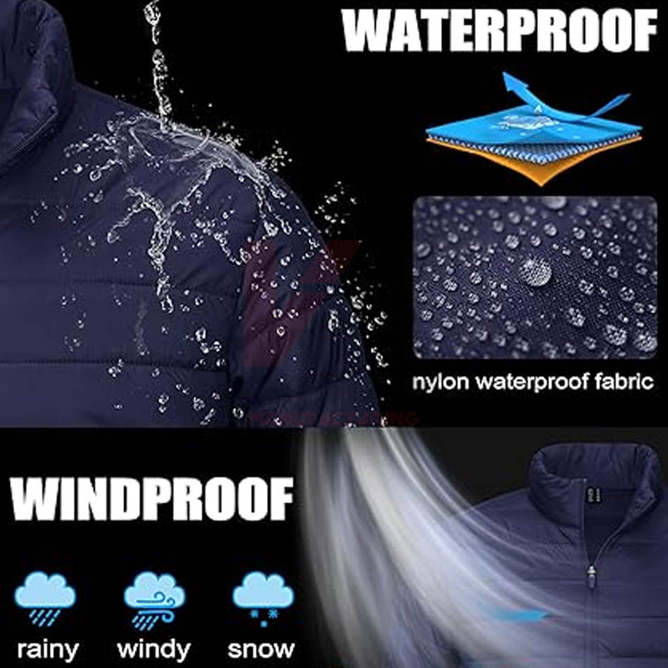 Chaqueta acolchada ligera para hombre con logotipo personalizado, abrigo aislante resistente al agua con cuello levantado y cremallera completa, embalaje fácil