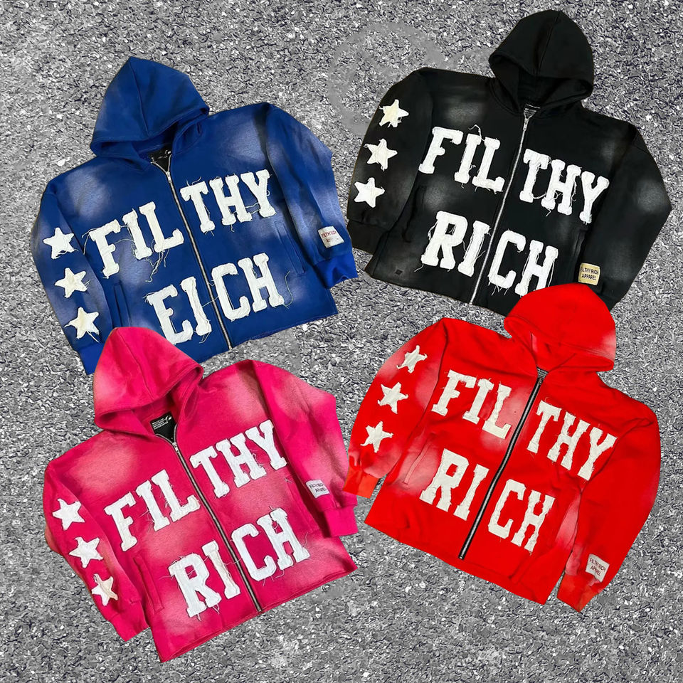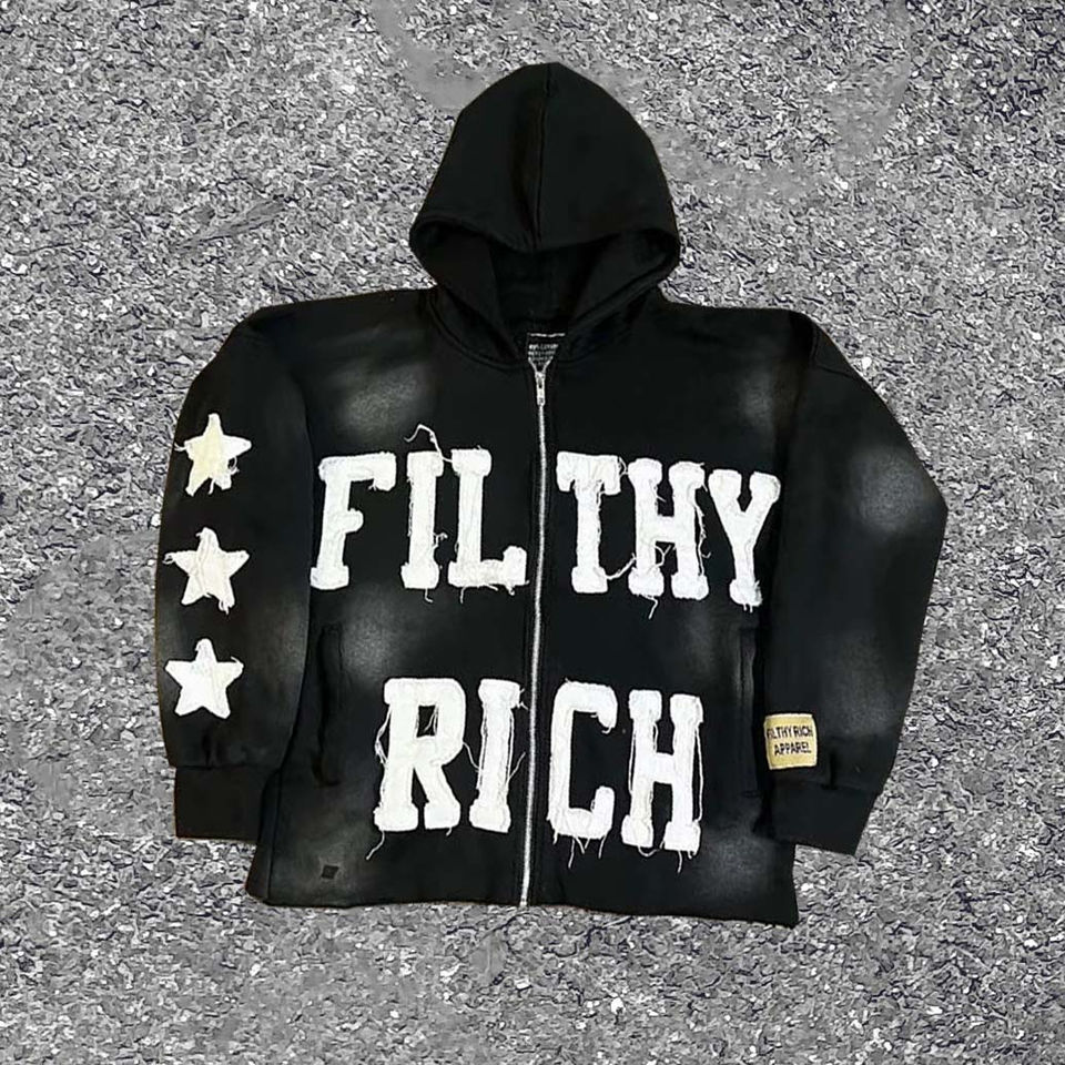 Sudadera con capucha para hombre con cremallera, lavado ácido, bordado desgastado, 100% algodón, otoño, oversize, con logo personalizado