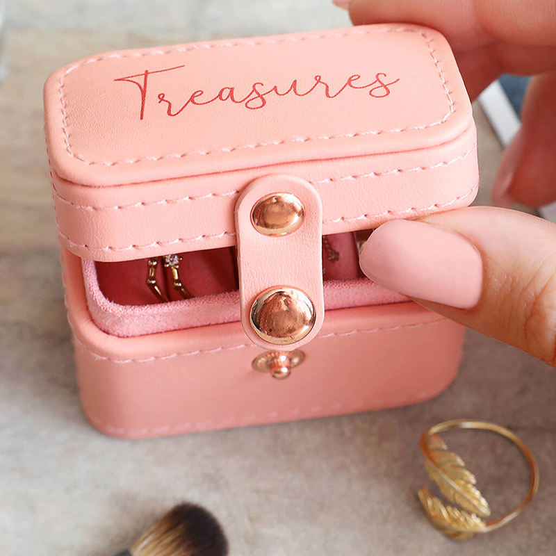 Mini caja de almacenamiento de joyería de viaje portátil con logotipo personalizado, organizador de joyería de cuero PU, anillos de inserción de terciopelo, collar Vintage