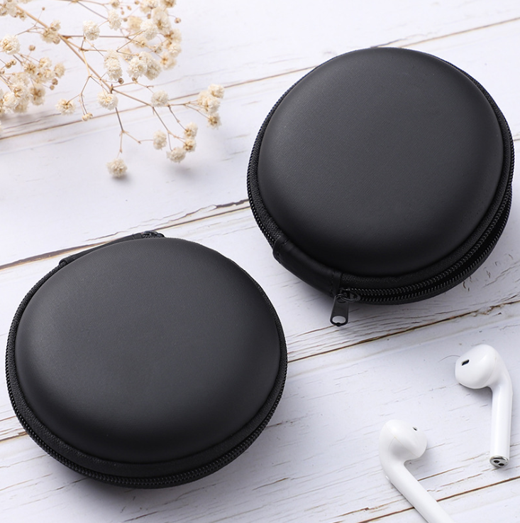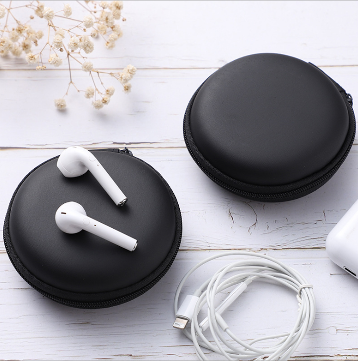 Estuche Personalizado para Auriculares con Logotipo, Mini Bolsa Redonda de Almacenamiento de Cuero PU y Eva con Cierre para Airpods y Earpods Pro