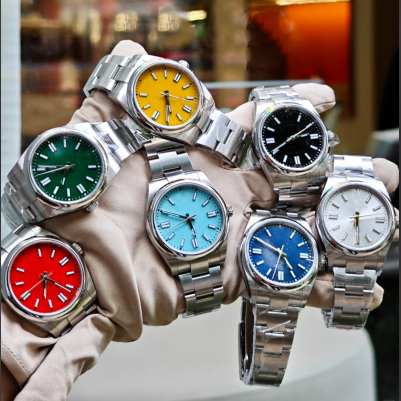 Reloj de pulsera de moda con correa de acero inoxidable ETA de oro amarillo de 41mm de alta calidad para hombre minimalista con logotipo personalizado