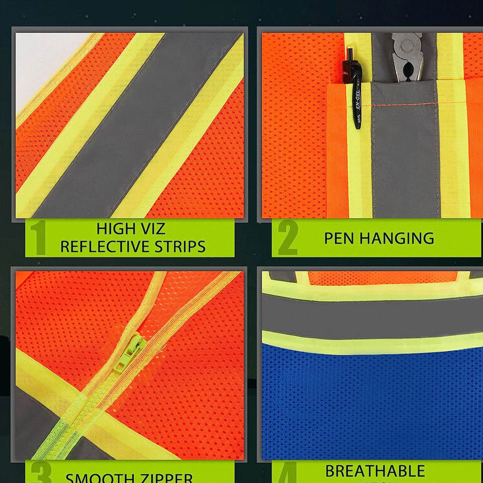 Logotipo personalizado multifunción reflectante de alta visibilidad chaleco de seguridad bolsillos al por mayor para el trabajo de construcción al aire libre chaleco de seguridad