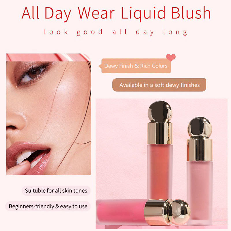 Rubor Líquido Multifuncional Personalizado con Logotipo, para Mejillas y Labios, Resistente al Agua, de Larga Duración, con Alta Pigmentación, Color Cambiante, Acabado Terciopelo