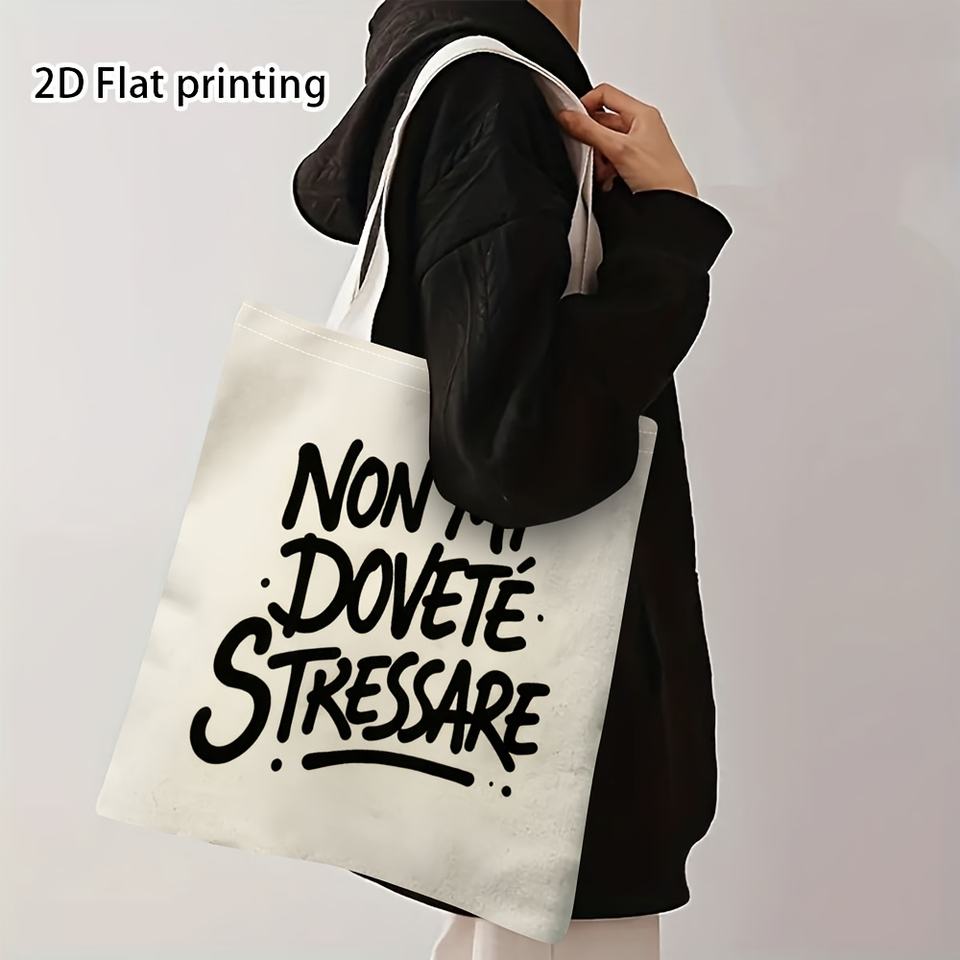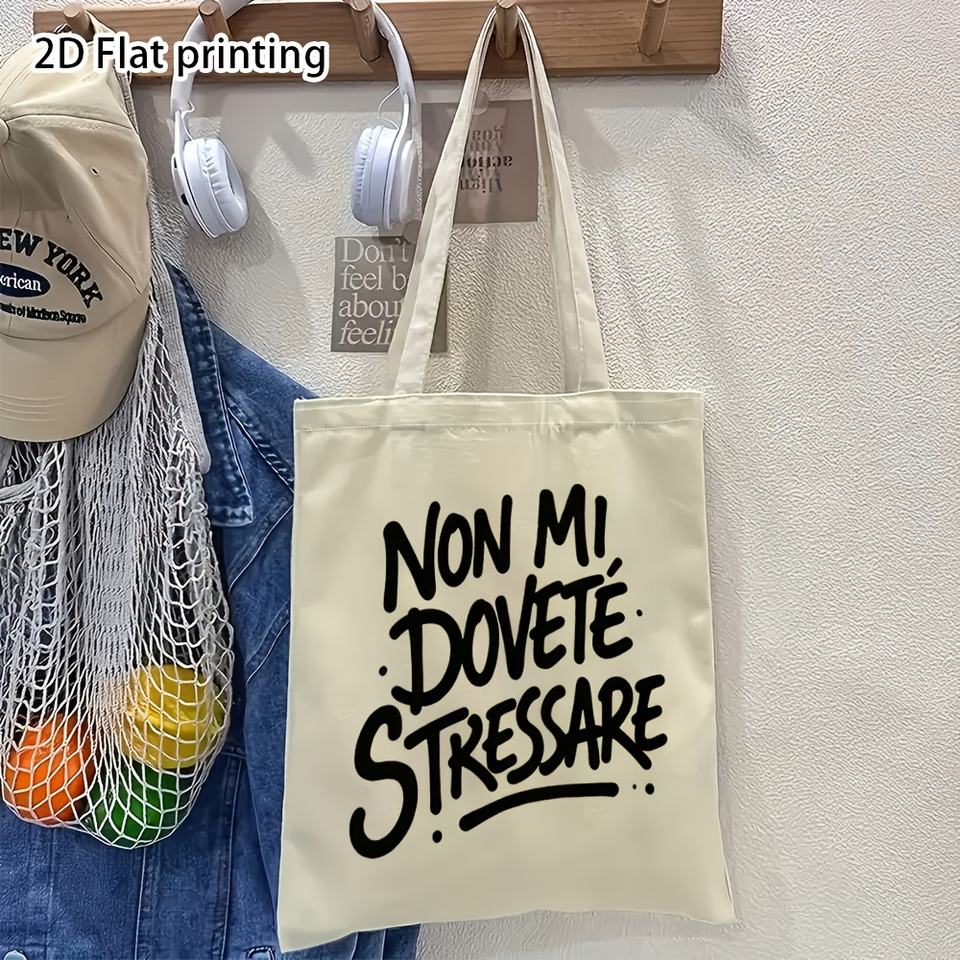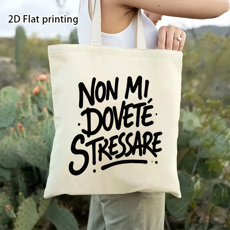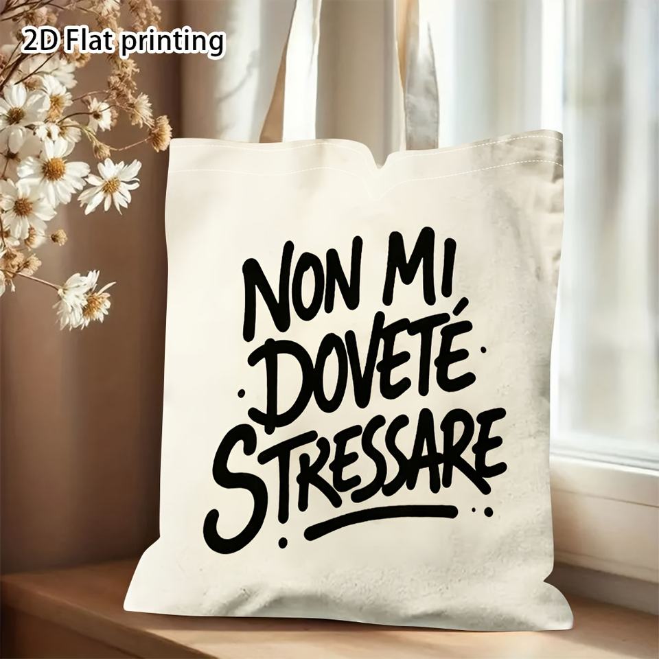 Bolsa de Lona con Estampado de Patrones NON MI DOVETE STRESSRE y Logotipo Personalizado, Apta para Uso Diario, Compras, Escuela y Viajes