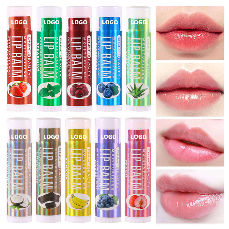 Logotipo personalizado fruta Natural hidratante Color con cambio de temperatura lápiz labial de larga duración transparente fresa melocotón bálsamo labial