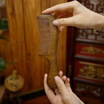 Peine de madera de sándalo natural con logotipo personalizado para salón de casa peine de madera con mango de madera de F S International