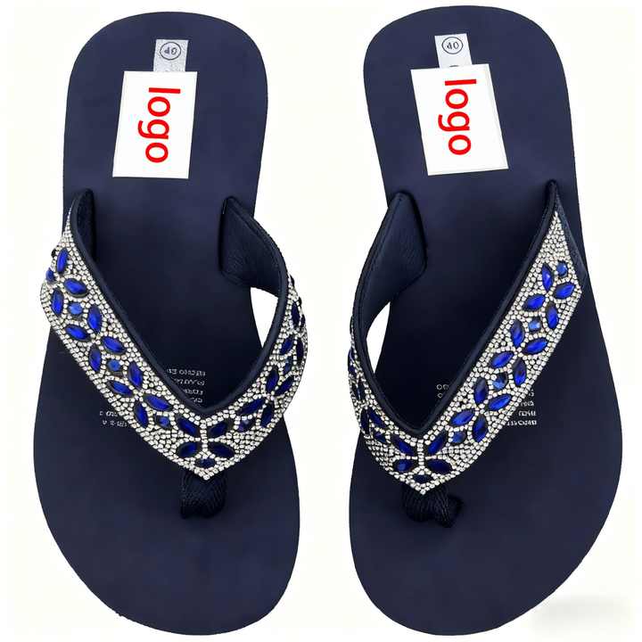 Chanclas personalizadas con logotipo, azul marino, con pedrería, sandalias de cristal a la moda, antideslizantes, para la playa, para damas.