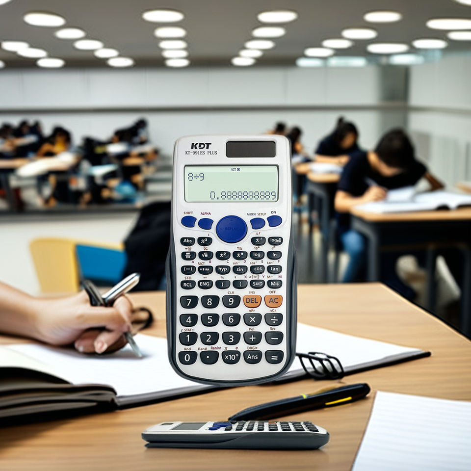 Calculadora científica de material ABS con logotipo personalizado, calculadora de fracciones elementales solares, funciones escolares, novedad de 417 PLUS