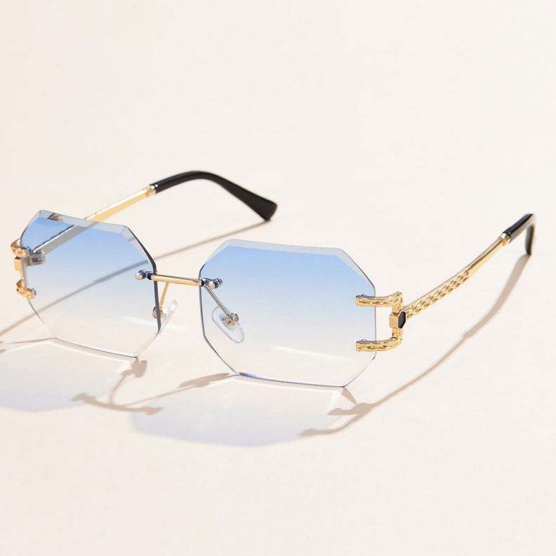 Gafas de Sol Rectangulares sin Montura para Mujer, con Logotipo Personalizado, Nuevo Diseño, Lentes con Corte Poligonal, a la Moda